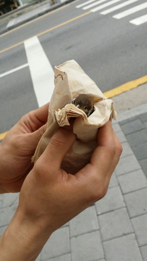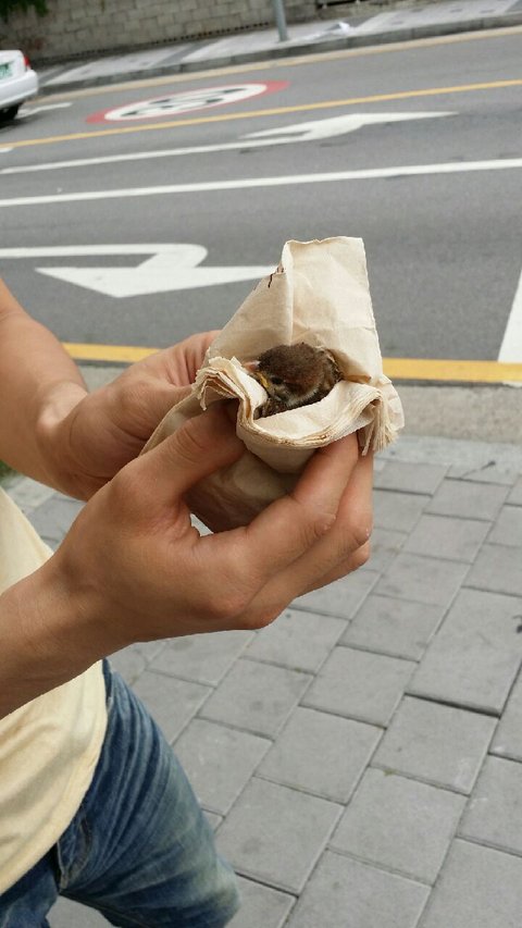 오늘 도서관 근처에서 아기새가 떨어져서 못나는걸 발견하고 동물병원에 데려갔습니다.