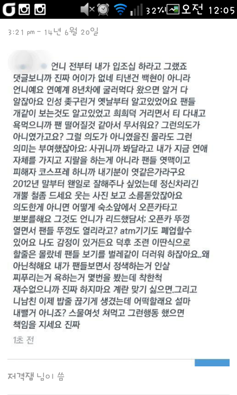 어떤팬이 댓글씀 오프안뛰고 판이나 사진으로만보면 팬사랑지극한 리더모습인데 아니였구나? 사실 이런 비슷한 일화 오늘 학교에서 들었을때 에이- 이랬는데 와 졸소름 ㅋㅋㅋㅋ