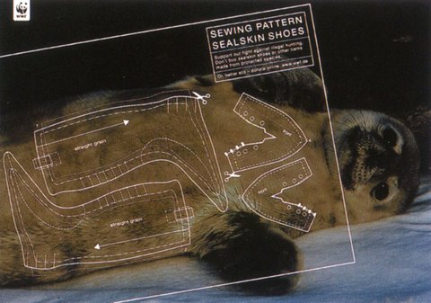 모피옷과 부츠를 만들 재단선이 그려진 광고