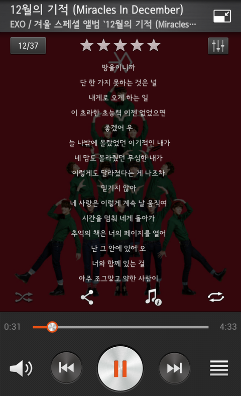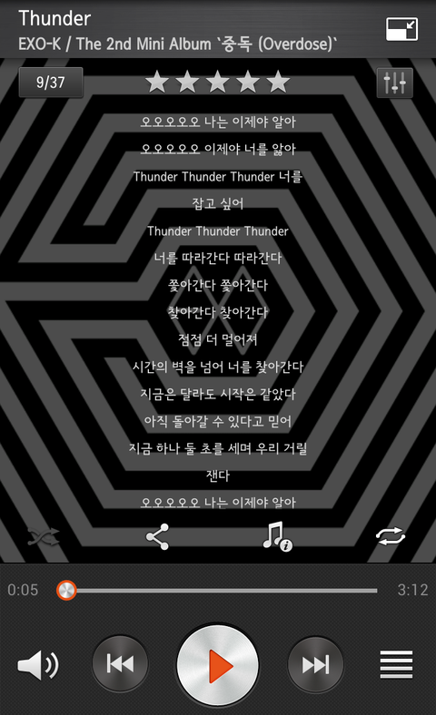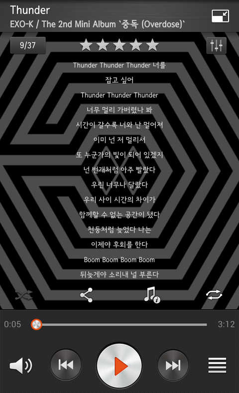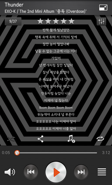 썬더, 12기 가사