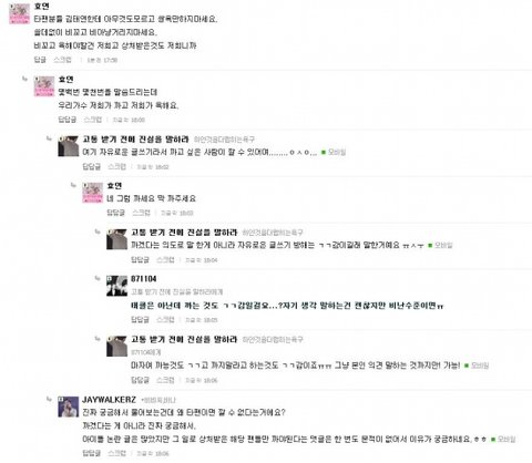 밑 사진을 요약하자면 우리 가수니깐 타팬 니네들은 짜지렴. 니네는 뭔데 깜? 쉴드bb