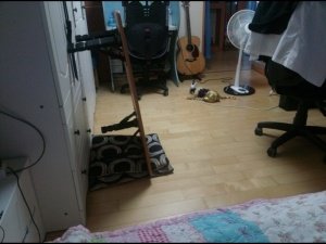 마땅히 둘 곳이 없어서 선반 위에 세워놨었죠.