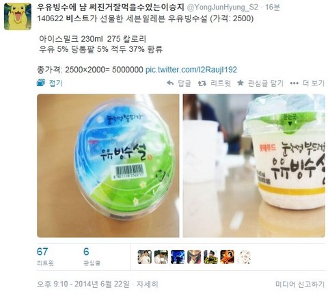힘드셨는데 비스트가 빙수줌ㅠㅠ