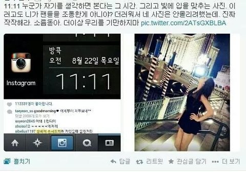 빛에 뽀뽀하는 사진 씹소름. 11:11이 더 씹소름. 태연이 너의 실체는 어디까지 나올 예정이야? 이 정도도 충분히 성기같아~ 그만 나와도 될 것 같은데 ㅎ 그러기엔 깔 게 너무 많지?