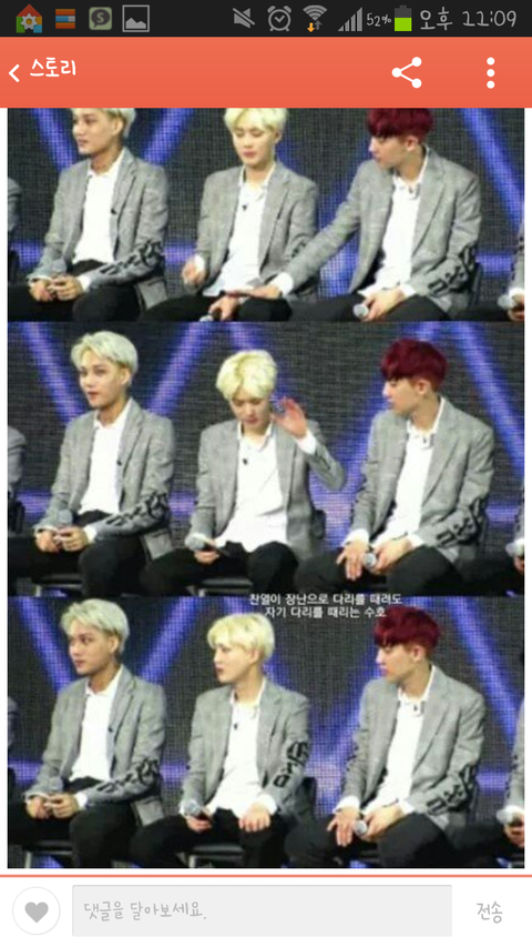 변백현과 김태연의 사이가 어떤지 잘 알면서도 , 가온차트에서 변백현이 소녀시대 노래를 듣고 춤추는 모습을 보고 아무말하지않고 눈물이 나오려는걸 참으며 묵묵히 물만 들이키던 준면이.
