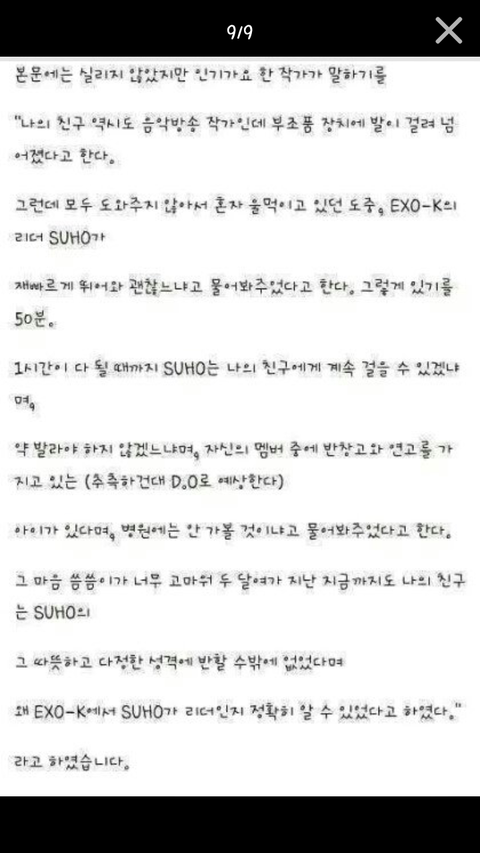 ( http://www.youtube.com/watch?v=2FDfEVN8vck 영상 링크입니다. 들어가시면 변백현은 소녀시대 노래를 들으며 춤추고, 준면이는 그런 변백현을 한심하게 쳐다보지만 애써 눈물이 나오려는걸 참고 같이 웃고 박수쳐줍니다.) 그런 준면이는 아파도 멤버들에게 말 못하고 병원에 갔지만, 변백현 김태연 열애설에 묻혀 혼자 아파하고 있습니다. 리더라는 자리에서 멤버들을 돌봐주고 감싸주며 막상 자신을 이해해주는 사람은 없어 마음고생이 심하고 혼자 많이 힘들어했을 김준면. 항상 노력하고 엑소를 개념돌로 띄워주는 준면이지만 다른멤버들속에 묻혀 인지하지 못하는 멤버. 지금까지 엑소를 키워준 사람은 다름아닌 EXO-K의 리더, 김준면입니다. 변백현 김태연 열애설보다 중요한건 항상 이런일에 묻혀 무관심받고있는 준면이라고 생각합니다. 다 알면서도 혼자 서러워했던 준면아,