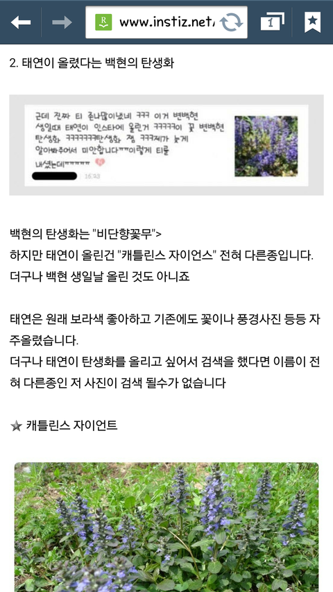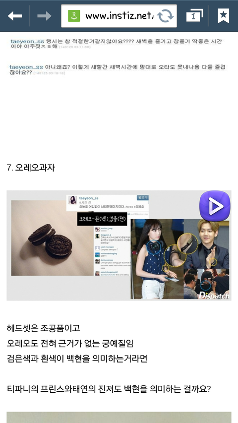 이 글의 요점은 연애를 하는게 잘못됬다는 게 아닙니다. 그건 대부분 팬들도 생각하는 점이겠죠. 하지만 분명히 섭섭함이 있겠지만 너무 억지로 의미부여를 하는게 답답해서 올려봅니다. 특히 오레오랑 엄연히 다른 꽃가지고 하는 말..^^; 저도 팬인데 당연히 기사 터졌을때 당황스럽고 하필 엑소 크리스때문에 뒤숭숭할때 좋은 이미지도 아닌 오픈카에서 찍힌 글때문에 연애를 인정한 것이 너무 미웠습니다. 하지만 그렇다고 해서 팬들이랑 소통하던 인스타그램에 과한 의미부여 하면서 스스로 팬질한걸 자책하고 자신이 좋아한 가수에게 등을 돌리는 건 너무하다고 생각했습니다.