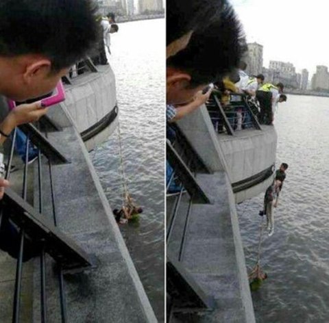 중국에서 한 여자가 강으로 투신했는데 중국시민들은 다 구경만 하고 있음 보다못해 한 외국인이 여자를 구하려고 강에 뛰어들었는데... 여자 살리고 보니 벗어둔 짐들 다 도둑맞았음