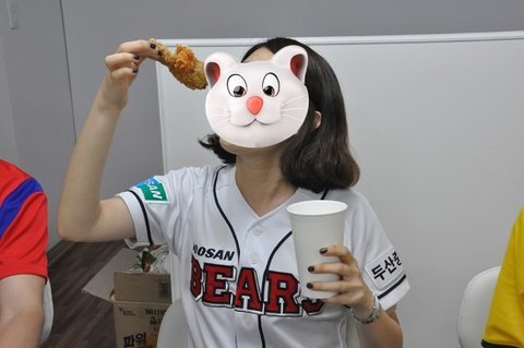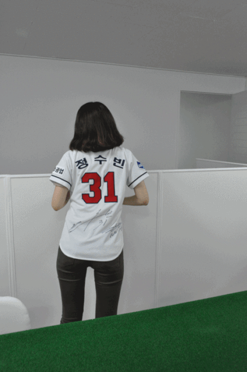 그리고 이 글을 올리게 만든 오늘 아이템을 낸(확!) 마케팅팀 막내...근데 정작 야구 유니폼을 입고...