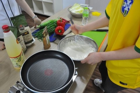 오늘의 요리 담당...저 브라질 티는 본인의 것이 아닌 남동생의 것이라고...