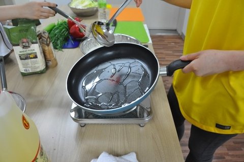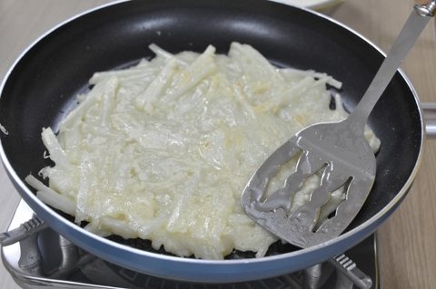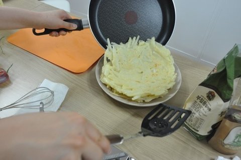 너무 바짝 익히면 하얀 국기 모양이 안 나오기 때문에 살짝 노릇하게만! 역시 기름은 마법의 재료군요.