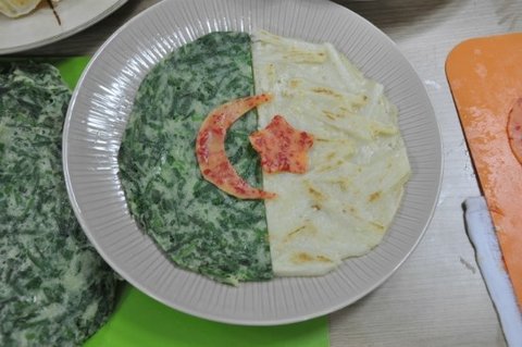 짜잔! 알제리 국기 모양의 전을 만들기 위해서는 흰색, 초록색, 붉은 색이 필요해요! 그래서 재료를 하나만