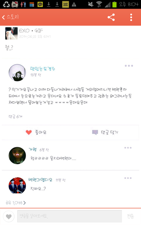 태연은 태연대로울고 백현은 백현대로울고 그럴꺼면 처음부터 행동을잘해야지 지들이 잘못해놓고 우는건 뭐임? 엄마아빠 말씀이맞네 지가 뭘잘햇다고울어