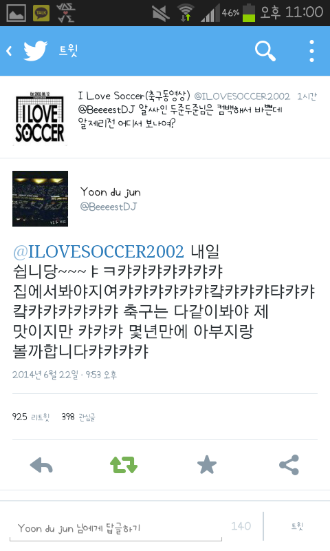 내일 알제리전 윤두준 반응