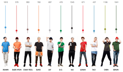 시우민>카이>첸>세훈>찬열>수호>레이>루한>디오>타오