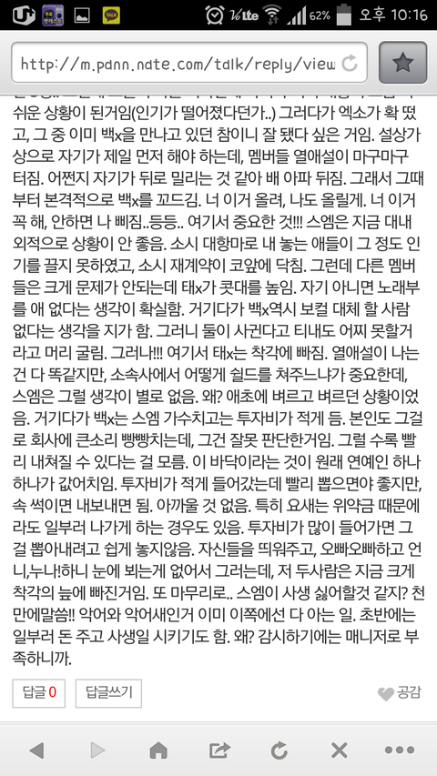 애초에 그룹에 대한 애정이 있었다면 저딴 식으로 나오지도 않았을거고 전에도 이 말했다가 탱빠들 한테 조카 까였는데 태연 독한애야 가까이서 알지 않았지만