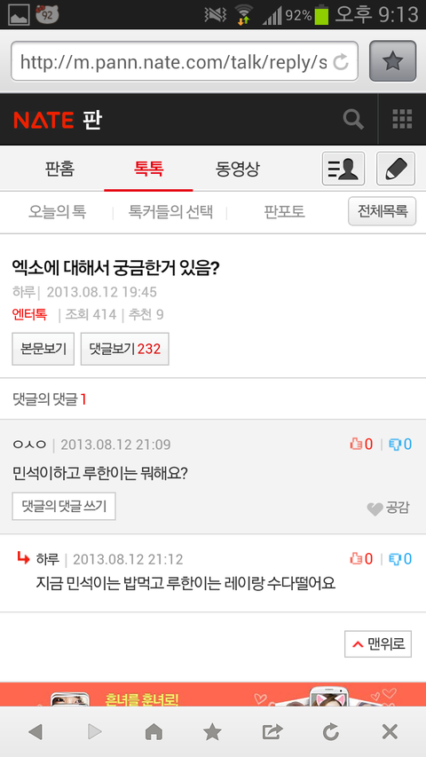 오늘의 팬톡