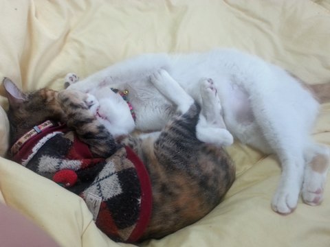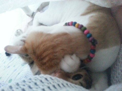 꽁알이는, 유리묘라기보단 아깽이때 구조되어 사람손을 타며 여기저기 임보를 다니다 저한테까지 온 아이에요.