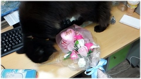 집사가 남친이라는 생물에게서 받아온 꽃다발도 검사...