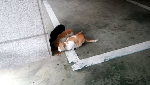 산책에서 돌아오는 길에 집사들은 이동네 길냥이들에게 사료를 나눠주곤 하는데,