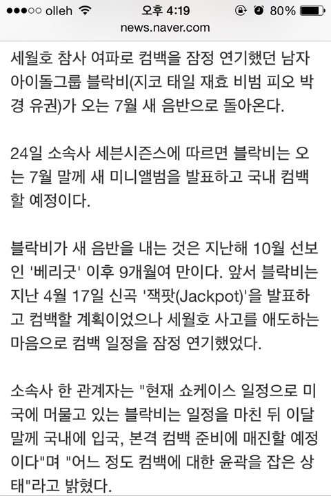 벌들아 드디어 블락비 컴백 !!!!!!!