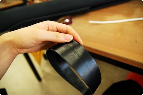 만든 형지를 가죽위에 대고 무거운 것을 올려줍니다. 절대 움직이지 않게 !!