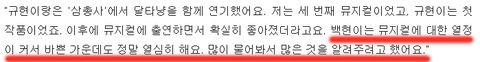 려욱이 변백현 뮤지컬 관련된 인터뷰도 했는데 사진이 안올라가짐 ... 규현이랑 려욱이 이런저런 얘기 충분히 할만큼 얼마나 친한데, 정말 백현이가 연습을 안했다면 려욱이가 백현이가 걱정이많으며 열심히하고 있으니 응원한다는 인터뷰를 했겠음 애초에 규현인터뷰를 과도하게 비약한 궁예질이 문제였던 것 같음.. 백현이 많은 잘못을 저질렀지만 없는 잘못까지 만들어서 까지는 않았으면 좋겠음