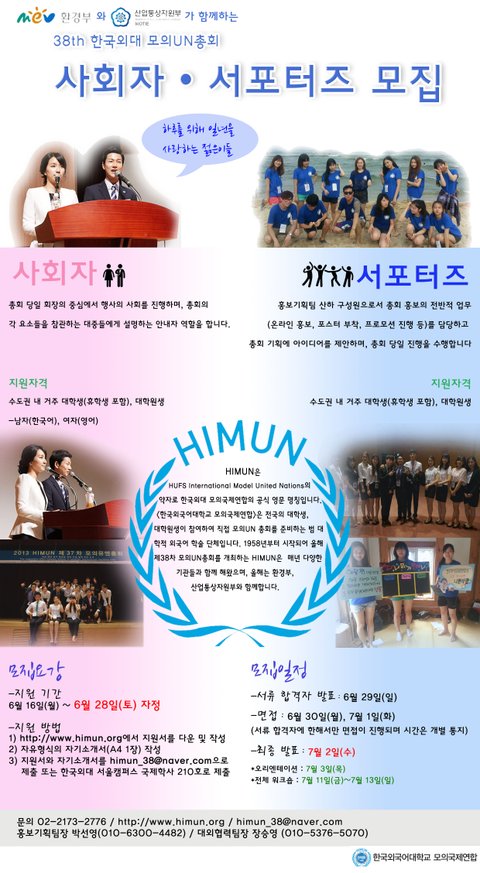 한국외대 모의UN에서 사회자, 서포터즈를 모집합니다(~6.28)
