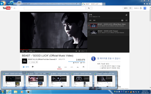 상대방 뮤비 조회수 8,890,430 vs 비스트 굿럭 뮤비 조회수 2,600,676