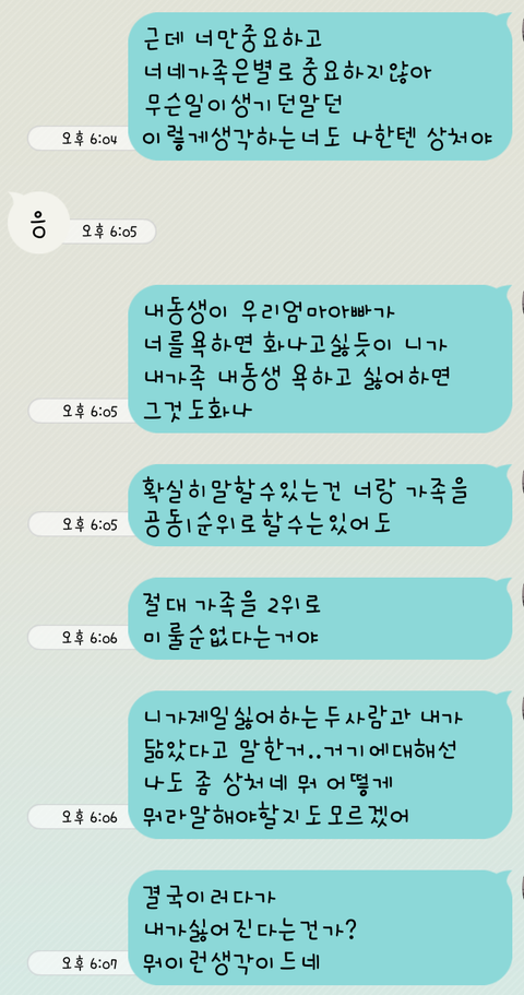 그래서 저도 점점화가났어요 제 동생을 그 새끼라느니 그렇게 말하는것도 화가났고 가족이면 다쳤다는 말을 들었을 때 걱정되는게 당연한건데...