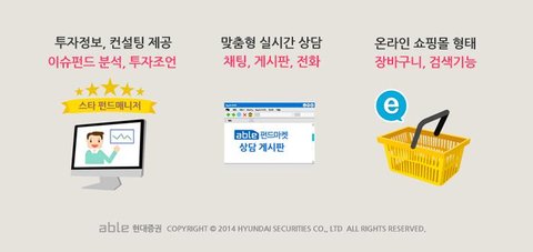 국내 최대 규모를 자랑하는 현대증권(윤경은 대표) able펀드마켓은 다양한 상품과 함께