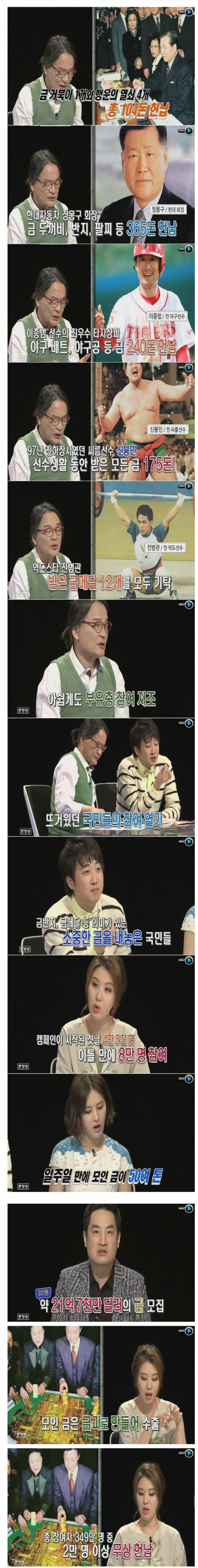 국민이 모금해서 국민이 한건데 왜 칭찬은 김대중 정부가 받는지 도저히 이해 못하겠음