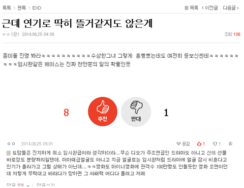 그리고 아직 시작하지도않은걸가지고 언급하며 디오는 뭐뭐해서 안될거라느니 이러는거니들 열폭 맞다. 아닌척하지마라 ㅋㅋㅋㅋㅋ