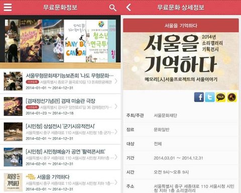 서울문화재단에서 운영하는 무료문화정보 어플!