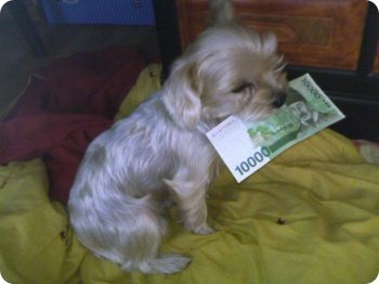 장난으로 돈줬더니 물고 도망가서 앉아있는 사진 ㅋㅋㅋ