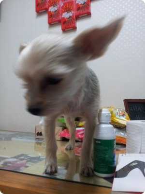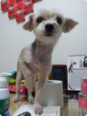 처음에 왔을때 털이 빡빡밀리고 마른상태로 와서 어디 아픈강아지가 아닌가 싶었지만
