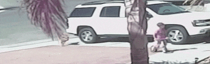 흥분한 개가 아이를 질질 끌고 가 큰 사고가 예상 됐으나 고양이 타라가 번개같이 달려들어