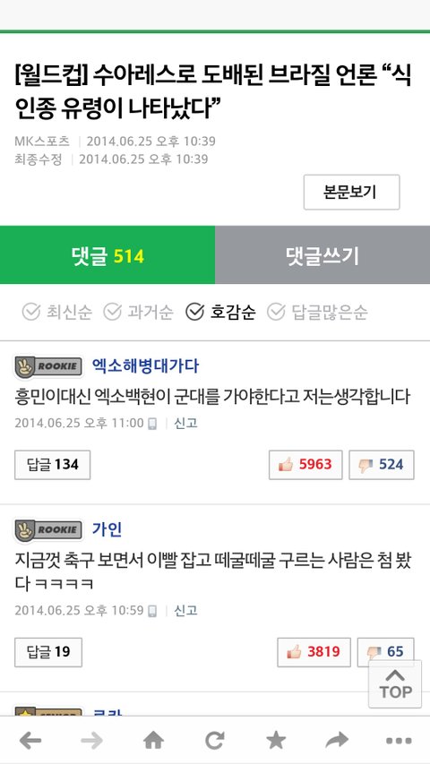 축구 기사에서도 당당히 베플1위 변백현