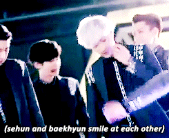서로 마주보고 웃는 백현이랑 세훈이