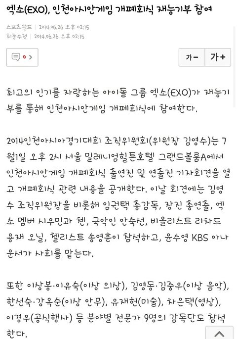 김형제 인천안시아 게임 계폐회식 재능기부 참여 한데! !