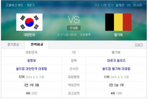 대한민국 월드컵 조별 예선도 내일 새벽 벨기에전 밖에 안 남았네요-