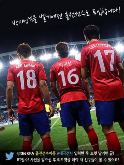 트위터 멘션으로 @theKFA 교체선수이름 #태극전사라고 날리면