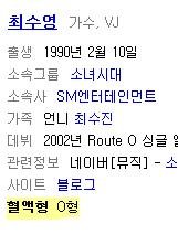 티파니- 닉쿤 , 태연- 백현 , 김태희-비 , 최자-설리 커플 O형