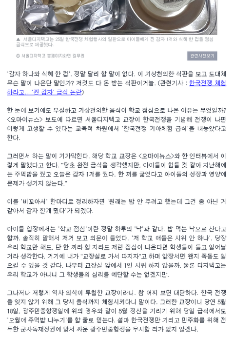 다들 우리학교 어제 6.25라 찐감자와 식혜급식 나왔다고, 페북/기사 통해 잘 알고계실거야요