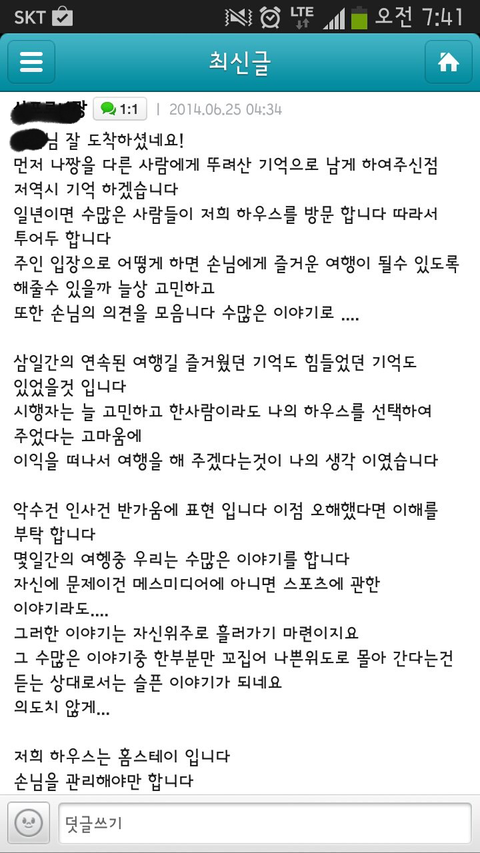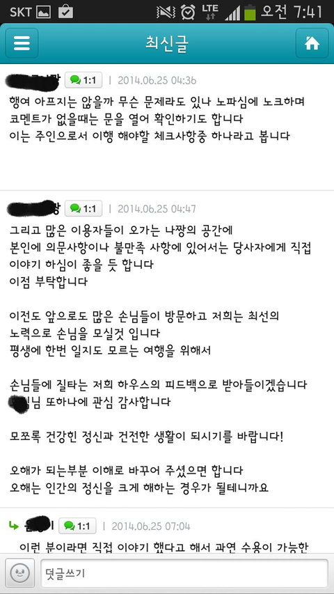 아래 하우스사장의 해명댓글 과