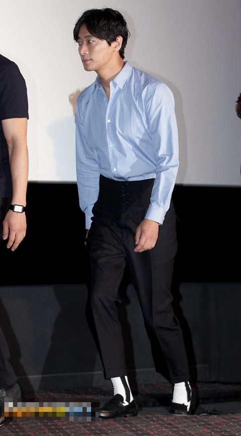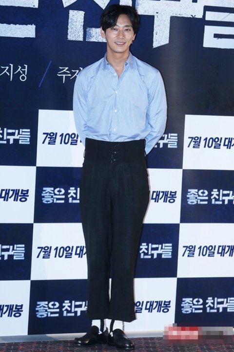 영화 좋은친구들 기자회견장에서 독특하고 개성있는셔츠를 입은 주지훈