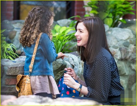 아이에게 환하게 웃어주는 앤해서웨이ㅋㅋ