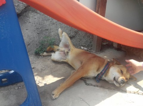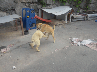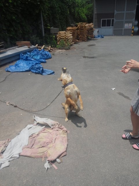 미끄럼틀 설치후 밥심이의 그늘막이 되었어요!