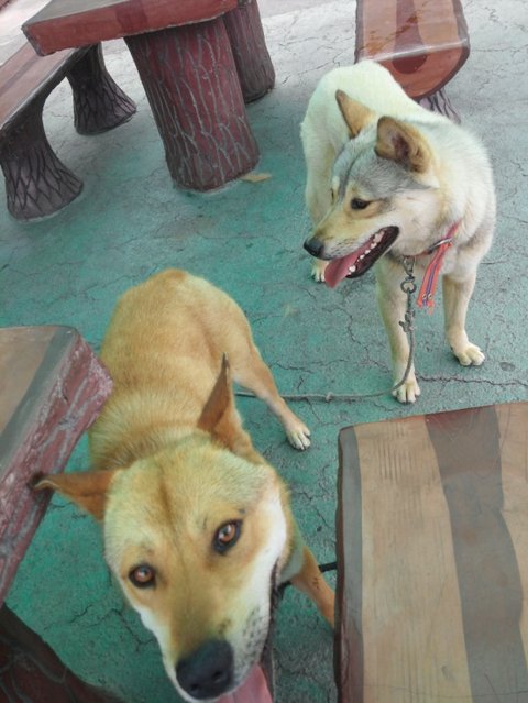 벤치에 앉아서 개님들하고 쉬어요~ ㅎㅎㅎ