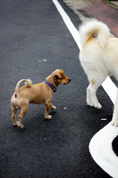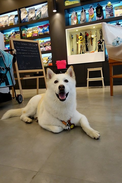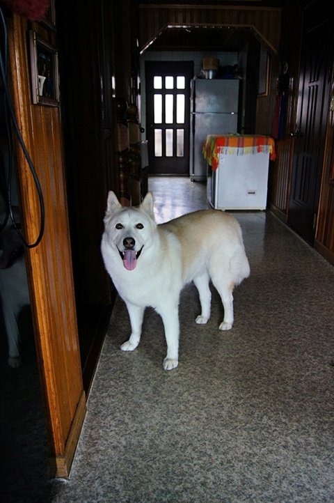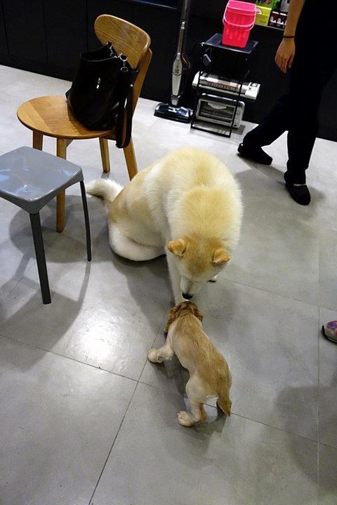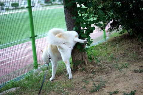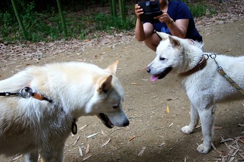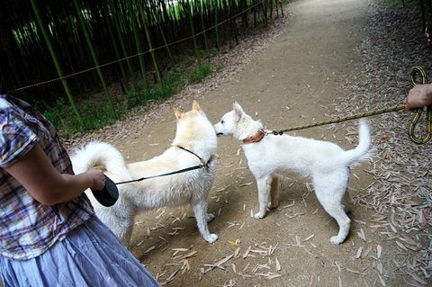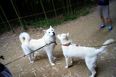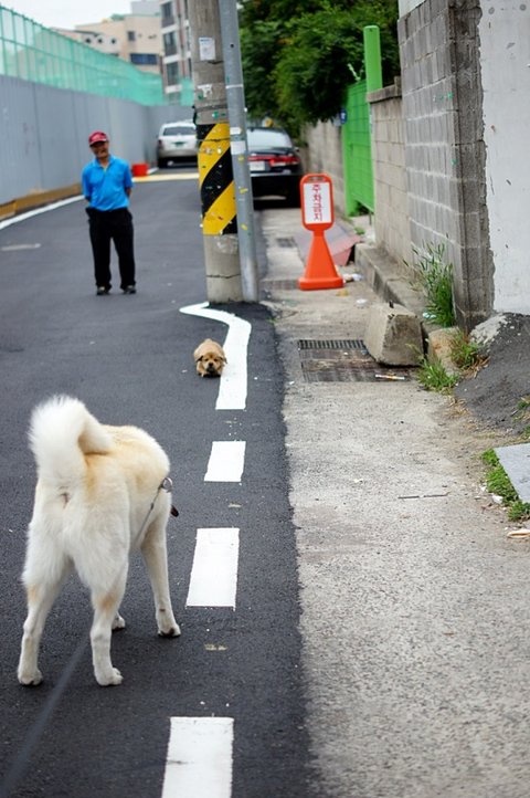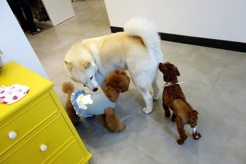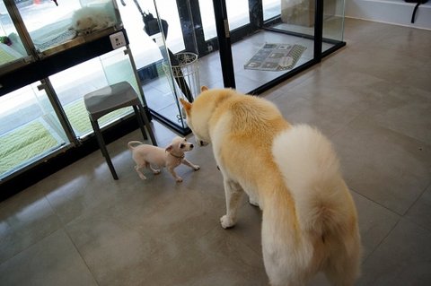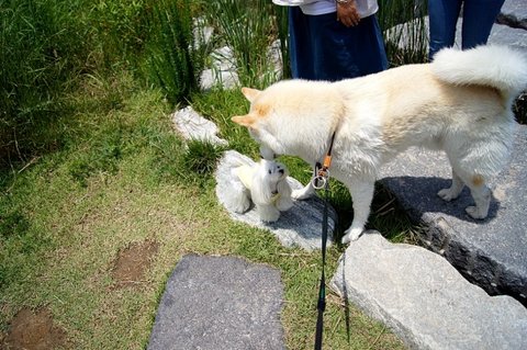 ㅋㅋㅋ 백구강아지를 만났어요.ㅋㅋ 심바보고 좋다고 킁킁 거리고 있네요.
